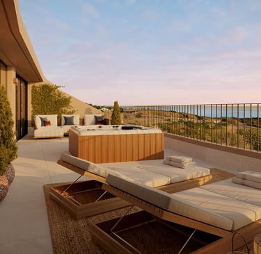Perched atop a gentle hillside in El Higueron rises a residential community designed for those seeking more than just a home: a true lifestyle. Its strategic location ensures that most residences enjoy breathtaking views of the Mediterranean Sea, framed by the serene backdrop of the Sierra de Mijas.