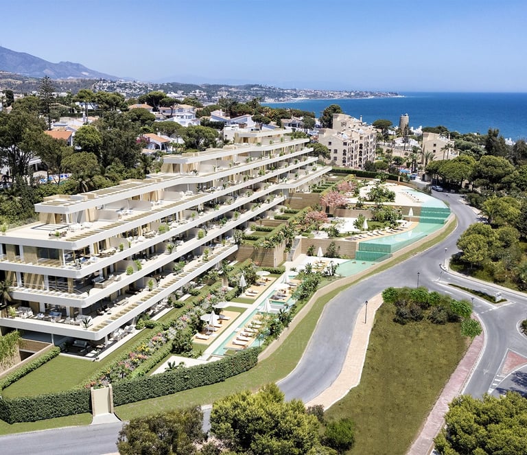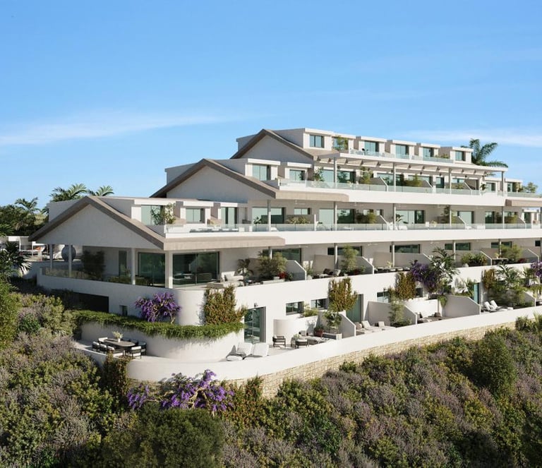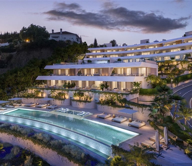 A boutique complex located in the heart of the Costa del Sol's Golden Triangle, from where, thanks to its elevated position, the landscape unfolds in stunning layers, with rolling green hills and the deep blue Mediterranean stretching to the horizon.